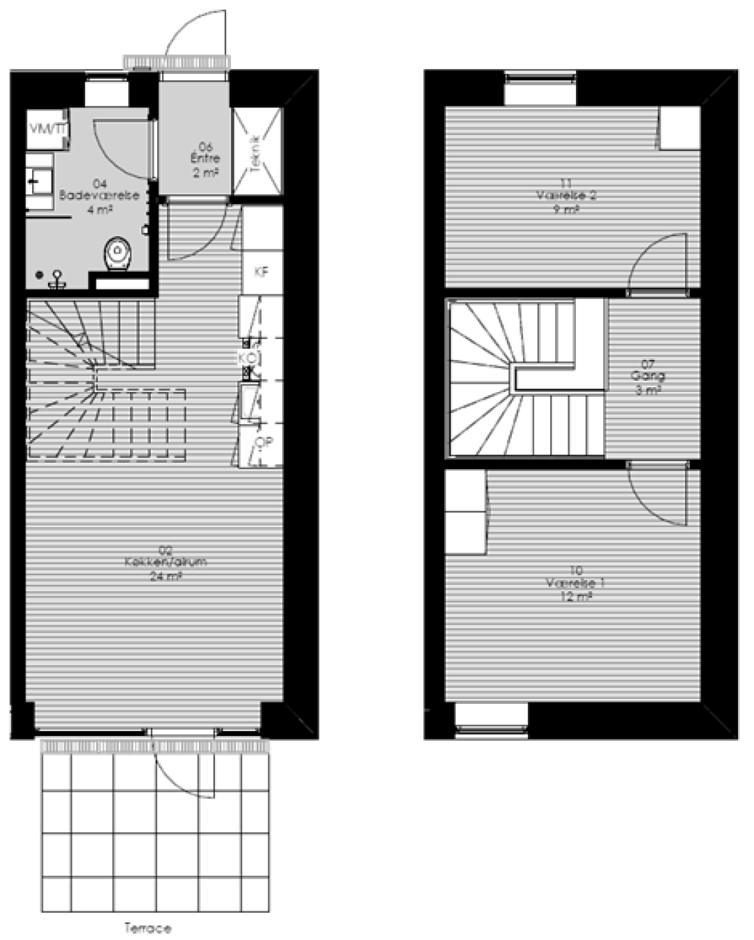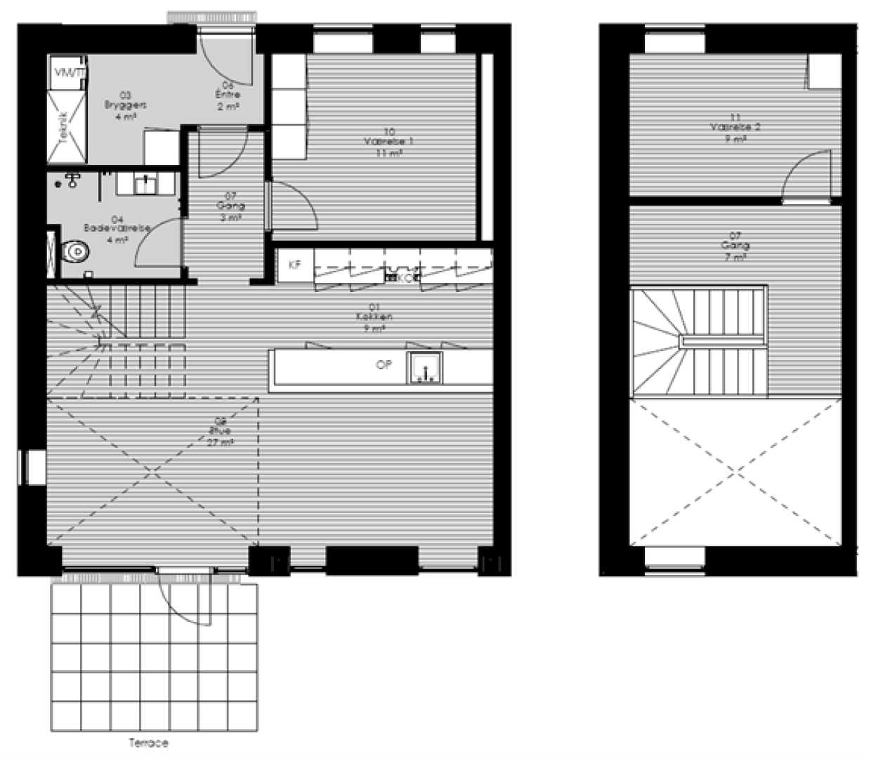 Denne to-etagers lejlighed har to hyggelige værelser, et køkken og stue, der er perfekte til familiehygge, et moderne badeværelse og en rummelig entré. Derudover er der en terrasse, der er ideel til at slappe af og nyde livet udenfor.