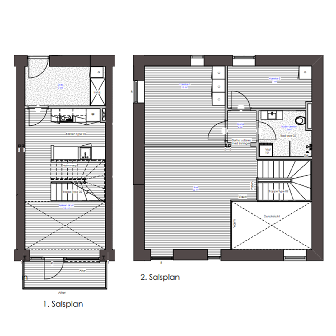 Denne unikke lejlighed i to plan byder på to rummelige værelser, et moderne køkken/alrum, der indbyder til hyggelige stunder, et stilrent badeværelse og en skøn terrasse med plads til afslapning og udeliv. Her kombineres komfort og funktionalitet i en bolig, der bare venter på at blive dit nye hjem.