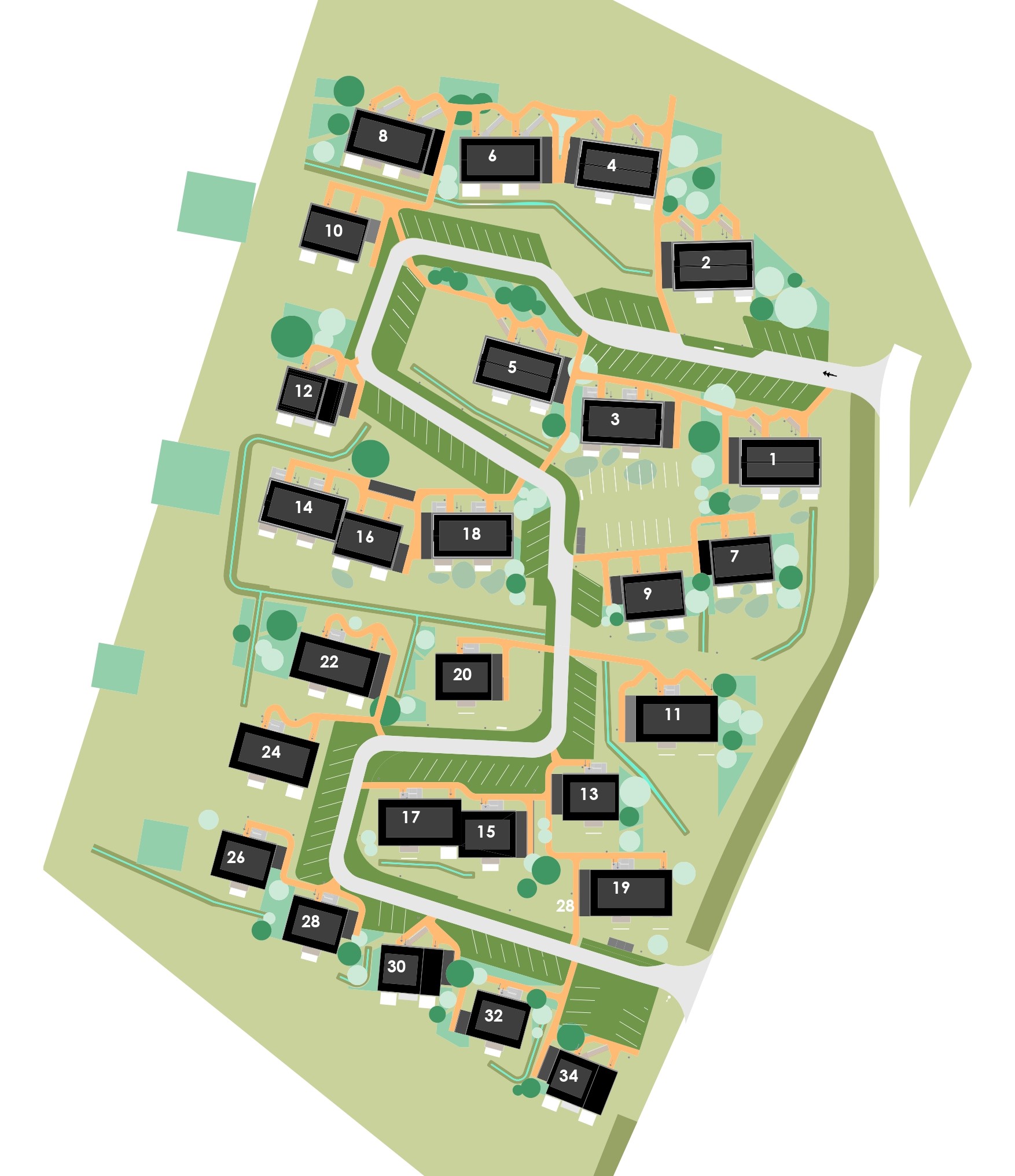 Lejlighederne har indgang i stueplan: 6A / 7B / 8A / 9B / 10A / 12A / 16 A